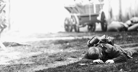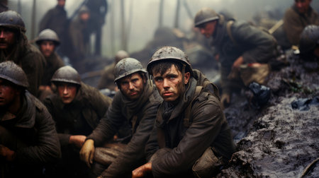 War, a moment frozen in the frame, the soul is touched by fear and grief, a that embodies the horror and sadness of the great war, a glimpse of history, wrapped in emotion, captures heart and mind.