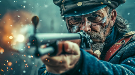 Mexican soldiers fighting French troops. background Battlefield with smoke and fire. Cinco de Mayo, Mexican defining moment. Realistic photo.