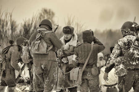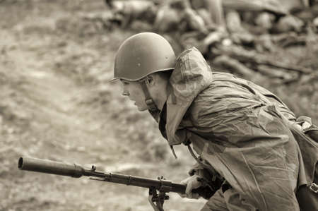 MOGILEV, BELARUS - MAY, 08, 2015: Reconstruction of Battle during events dedicated to 70th anniversary of the Victory of the Soviet people in the Great Patriotic War.