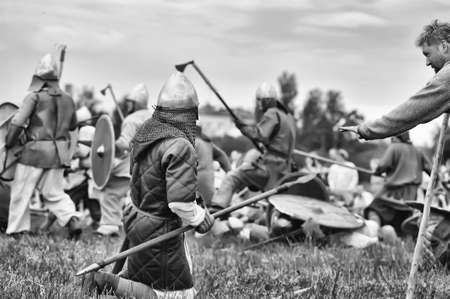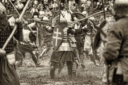 Russia, Priozersk 06.07.2014 Knights in the medieval battle at the Russian Fortress festival of historical reconstruction