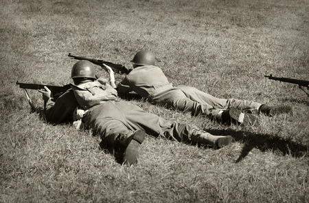 Soldiers Engaged in Combat During World War II: Vintage Photo. Concept Military, Combat, Soldiers, World War II, Vintage Photo