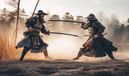 The fight between the samurai and his opponent was intense, the katana flashing Creating using generative AI tools