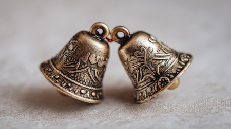 This close-up image showcases intricate vintage decorative bells, featuring detailed patterns and an elegant antique finish, perfect for artistic projects.