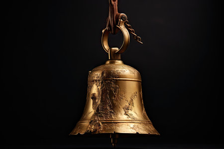 The dark background accentuates the elegance of the vintage hand bell. Creating using generative AI tools