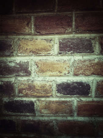A rustic brick wall texture showing weathered red, orange, and dark brown bricks with rough mortar lines, creating an aged look.