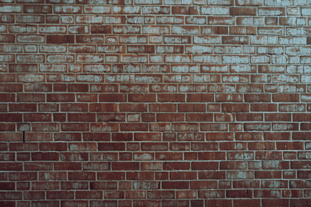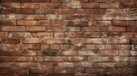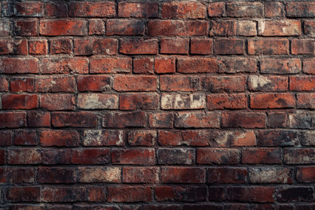Rustic red brick wall with worn, weathered texture, showcasing subtle mortar cracks, providing a unique, vintage-inspired background for creative designs and projects.
