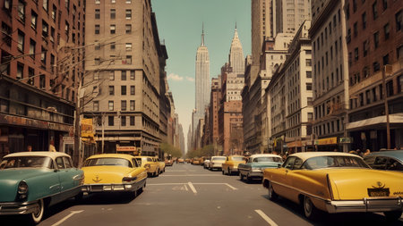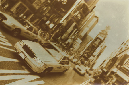 old vintage Town of New York with a lot of traffic and skyscrapers