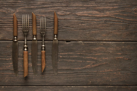 cutlery on the table, old forks on the background of old oak