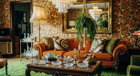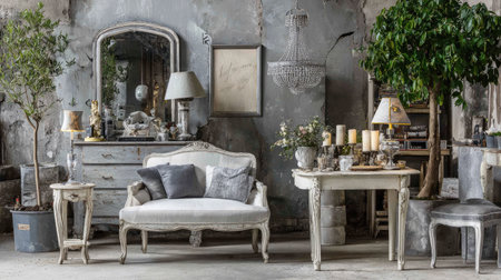 retro room with classic furniture, shabby chic decor, and vintage accessories, created with generative ai
