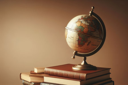 A vintage globe placed atop a stack of worn antique books, evoking a sense of history, travel, and exploration in a cozy setting.