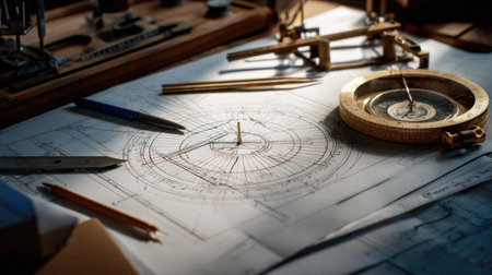 Discover a captivating scene of vintage drafting tools and blueprints that embody the essence of engineering and design, perfect for creative projects and inspiration.