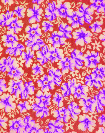 Fabric with a delicate floral pattern, close-up as texture. Old-fashioned cotton or linen textile in a retro style with a print of scattered colorful flowers.