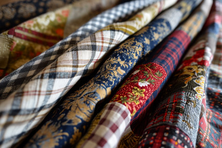 A vibrant collection of beautifully crafted patchwork fabric pieces, perfect for inspiring crafts and decor ideas. Generative AI
