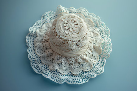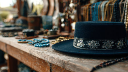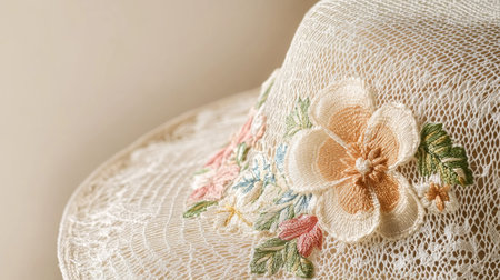 Wide-brimmed hat placed on a pastel background, featuring pink and blue colors, highlighting contemporary design and appealing aesthetics for fashion enthusiasts