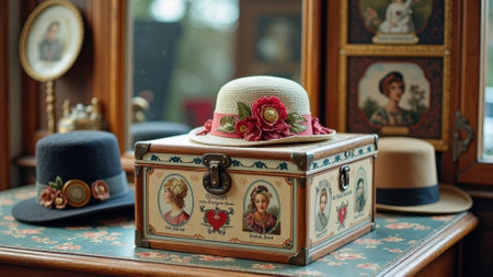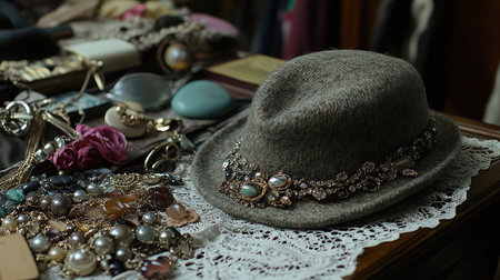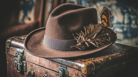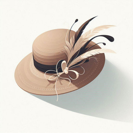 Vintage hat with feathers, flowers and beads. Vector illustration.