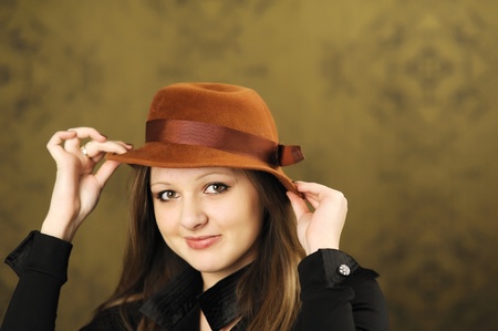 Sexy young pretty woman with vintage retro hat and seductive face outdoor