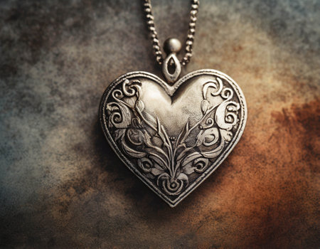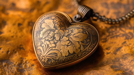 This captivating antique heart-shaped locket features an intricate floral design, resting against a beautifully textured vintage background, evoking nostalgia.