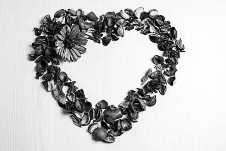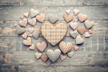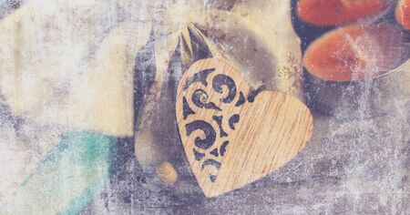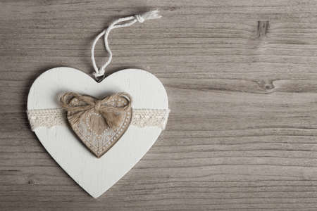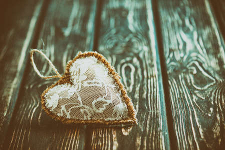 Vintage heart shaped decor on dark rustic wooden table