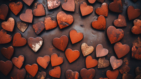 Hearts on rusty metal background, valentine's day concept