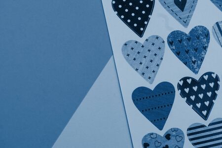 selective focus, postcard with hearts, in the classic tinted blue
