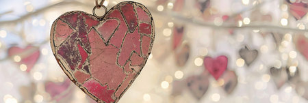 Rustic heart ornament with romantic bokeh lights