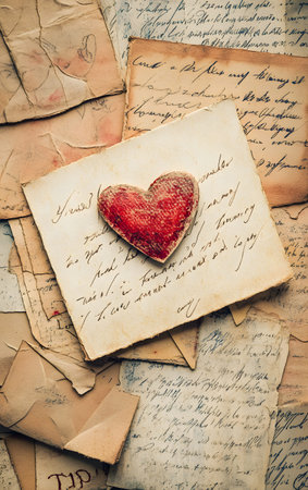 A romantic scene featuring a heart-shaped object resting on love letters, evoking nostalgia and deep emotions of love and connection.