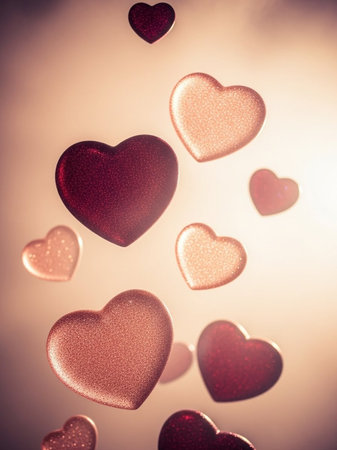 Warm, Glowing Valentine s Day Hearts Bokeh Background With Copy Space For Valentine s Day.