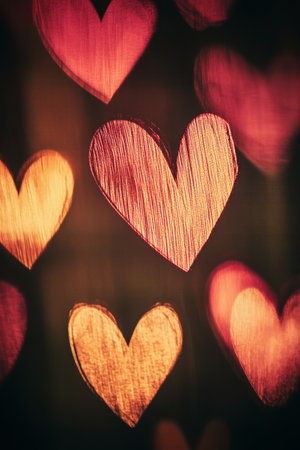 Two overlapping hearts symbolize love, connection, and Valentine's day, creating a romantic and affectionate mood