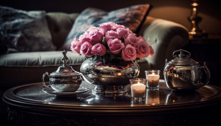 Elegant vase holds fresh flower bouquet on table generated by artificial intelligence
