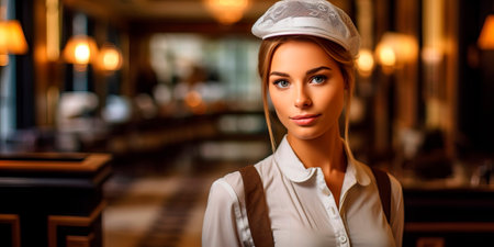 American woman waitress in a cafe close-up. High quality photo. Generative AI
