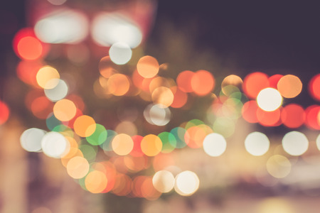 Defocused bokeh abstract background created by bulb lights. Vintage tone.