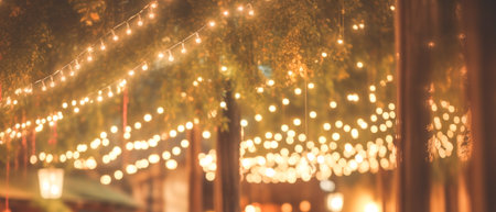 Warm String Lights Glowing in a Festive Outdoor Setting, Creating a Magical Bokeh Effect.