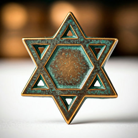A close up of a Star of David with intricate details, symbolizing Judaism.