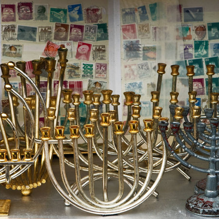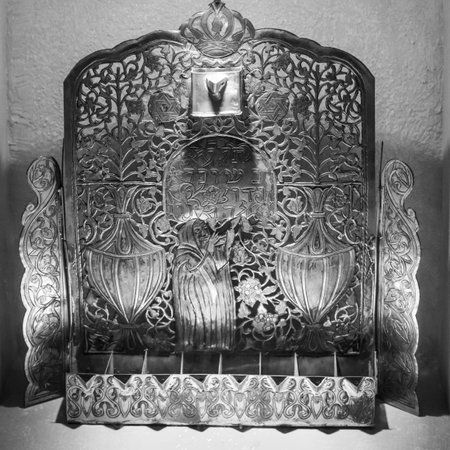 Jerusalem, Israel - April 2, 2019: Big Hanukkah Menorah in King Davids Tomb.
