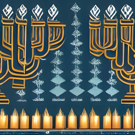 Background with decorative menorahs.Hanukkah as a traditional Jewish holiday. A time of celebration.