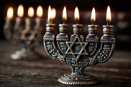 Hanukkah menorah with lit candles symbolizing the festival of lights