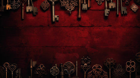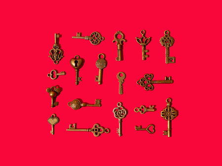 Decorative keys arranged na crvenoj pozadini. Pattern