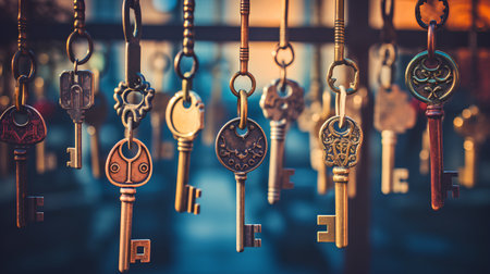 A collection of ornate, vintage keys hangs in the air, bathed in a warm, magical glow. Each key represents a new opportunity, a secret to be unlocked, or the solution to a puzzle.
