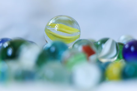 Playing with lot of colorful marbles in the spare time
