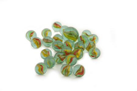 Some marbles that have been arranged isolated on a white background with copy space.