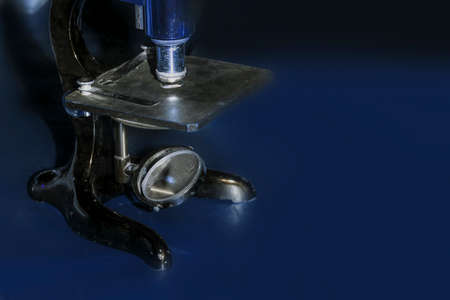old microscope close-up, image on a blue background