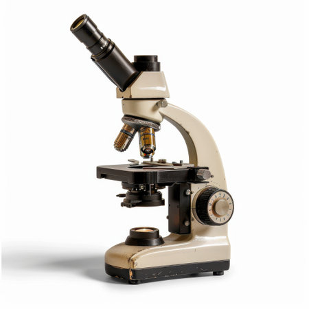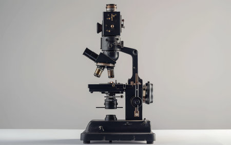 A classic laboratory microscope in a vintage style, perfect for educational purposes, scientific research, and healthcare applications. Ideal for detailed specimen analysis.