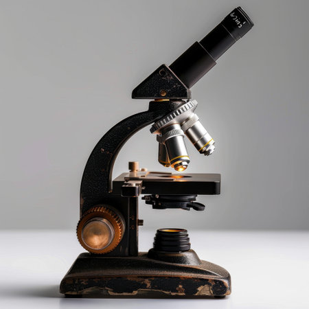 Vintage laboratory microscope with adjustable eyepiece and stage platform for educational and research purposes in science and biology studies