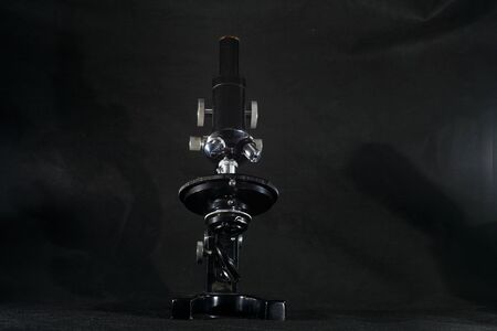 Microscope on table for vintage science background.