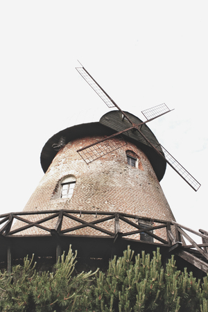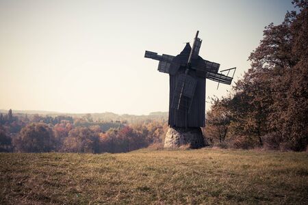 Windmill in the countryside. Vintage style toned picture. Country landscape.