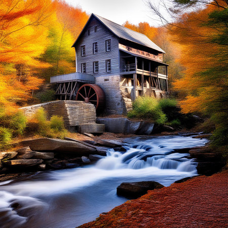 Autumn Splendor: Glade Creek Grist Mill Amidst Colorful October Foliage in West Virginia's Popular Fall Destination