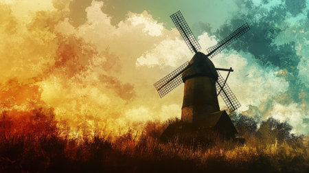 A poetic picture of a windmill pastoral, a quiet time of a country windmill