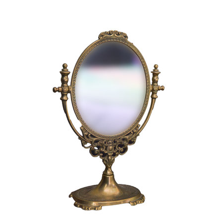 Vintage tabletop rotating oval mirror in a bronze frame isolate on a white background.