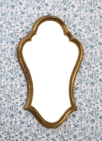 Antique vintage blurred mirror on wall with wallpaper, retro vintage design space for text
