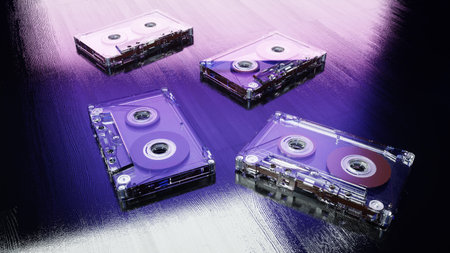 Vintage audio cassette tape in blue and purple tone. Music concept.